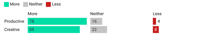 Please think about the impact that using an artificial intelligence program has had on the way you do your job. Would you say that it has made you more or less productive / creative?