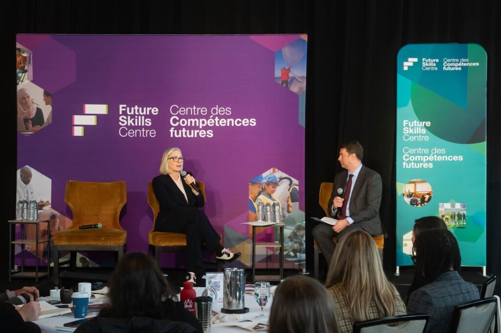 Un moment marquant a été notre conversation informelle avec l’honorable Patti Hajdu, ministre de l’Emploi et de la Famille du Canada et ministre responsable de FedNor, en compagnie de Noel Baldwin, sur l’avenir des compétences au Canada. Elles ont exploré la manière dont les technologies telles que l’intelligence artificielle (IA) transforment le travail quotidien, l’importance de briser les préjugés autour des métiers spécialisés et la manière de garantir que chacun puisse profiter des opportunités à venir.
